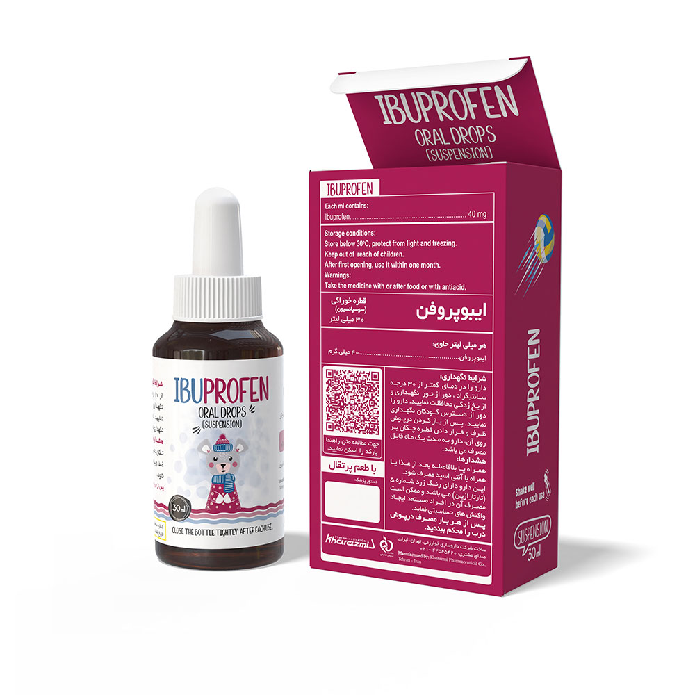 | معرفی محصول | 120 میلی لیتر سوسپانسیون خوراکی ایبوپروفن هر پیمانه (5 میلی لیتر) حاوی: ایبوپروفن 100 میلی گرم | |||||||||||||