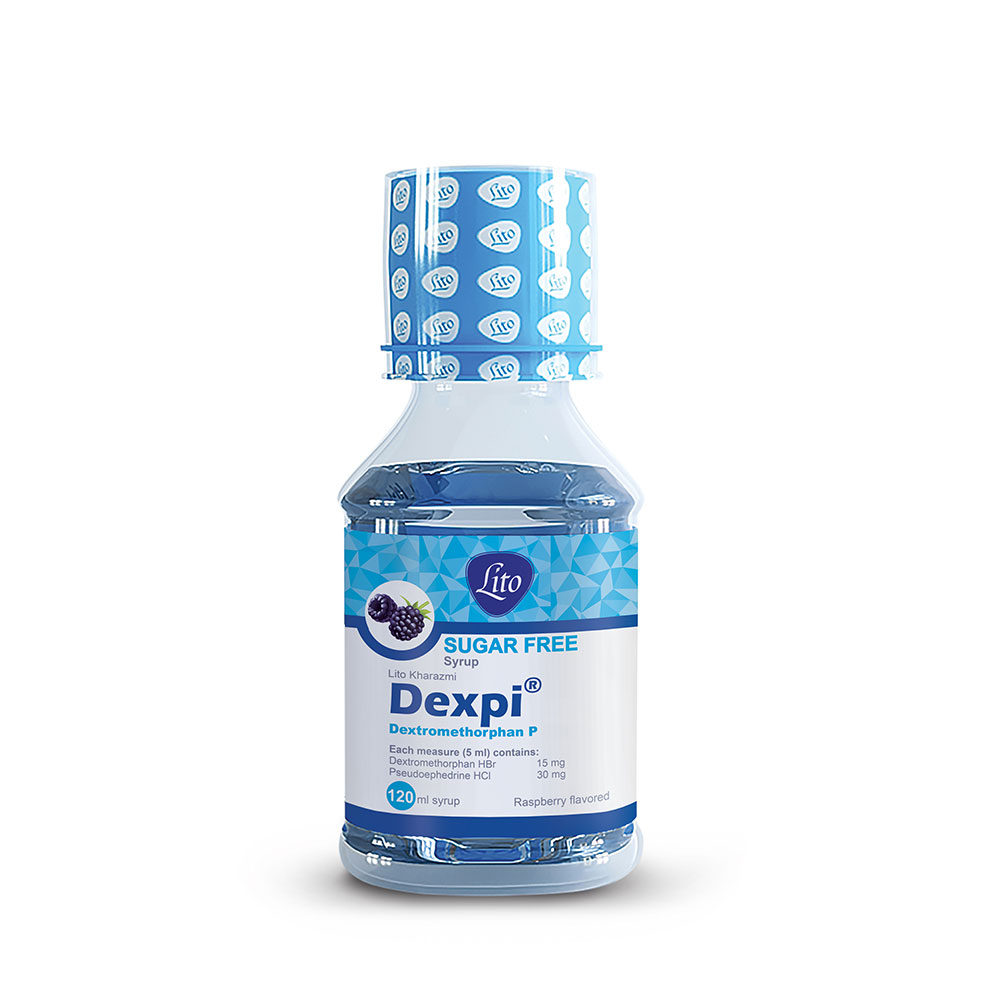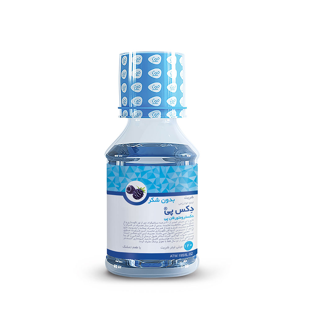 معرفی محصول هر پيمانه (5 ميلي ليتر) از شربت دكسترومتورفان پي حاوی 15 ميلي گرم دكسترومتورفان هيدروبرومايد و 30 ميلي گرم سودوافدرين هيدروكلرايد و 5  ميلی گرم سديم ساخارين (به عنوان شيرين كننده) می باشد که در جعبه های يك عددي همراه با پيمانه و برگه راهنمای مصرف دارو عرضه می شود.