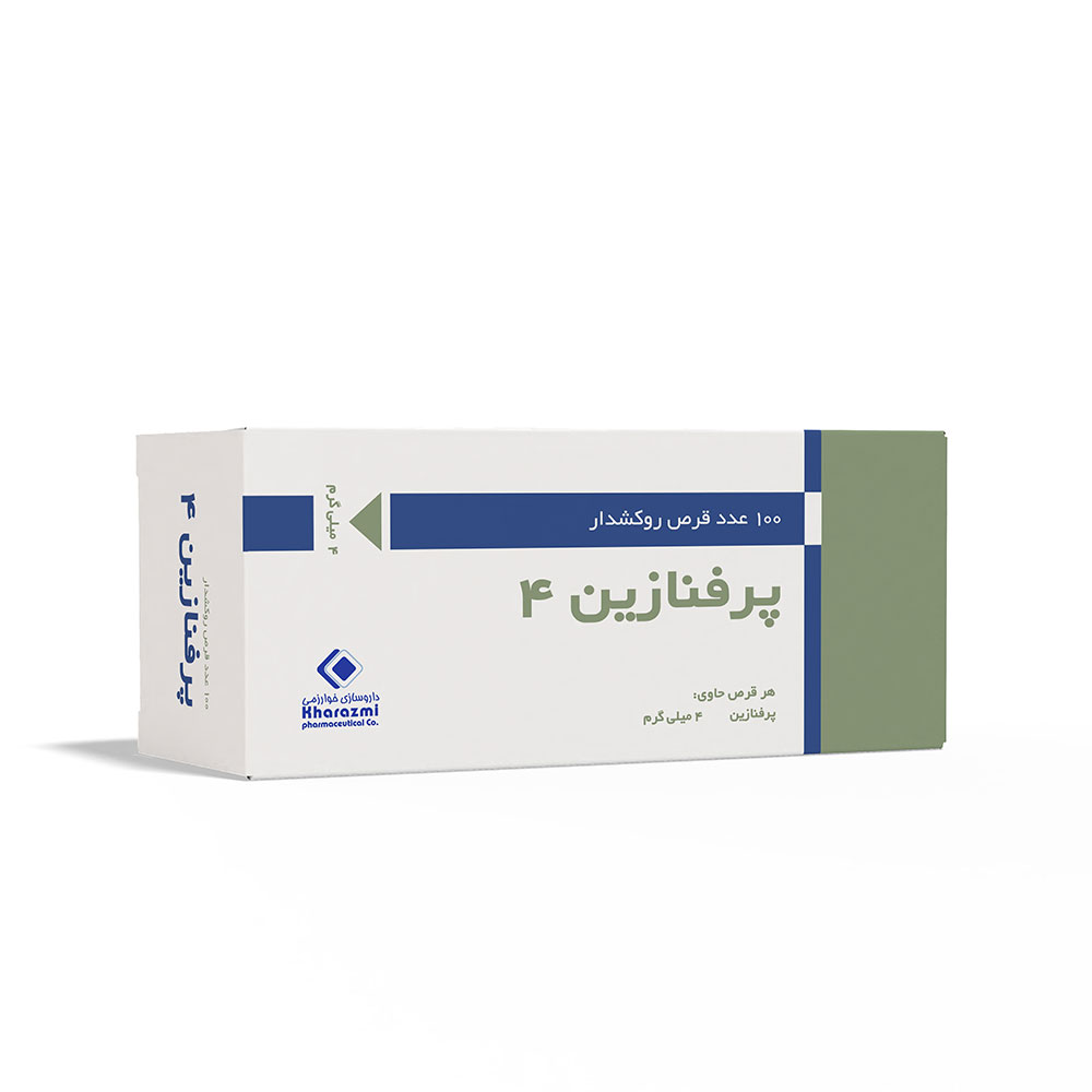 | معرفی محصول | پرفنازین هر عدد قرص خوراكي روكشدار پرفنازين 2، حاوی 2 میلیگرم پرفنازين بعنوان ماده موثره دارويي بوده و هر عدد قرص خوراكي روكشدار پرفنازين 4، حاوی 4 میلیگرم پرفنازين بعنوان ماده موثره دارويي بوده و هر عدد قرص خوراكي روكشدار خط دار پرفنازين 8، حاوی 8 میلیگرم پرفنازين بعنوان ماده موثره دارويي بوده كه داخل جعبه به همراه بروشور، توسط شرکت داروسازی خوارزمی توليد و به بازار عرضه میشود. | |