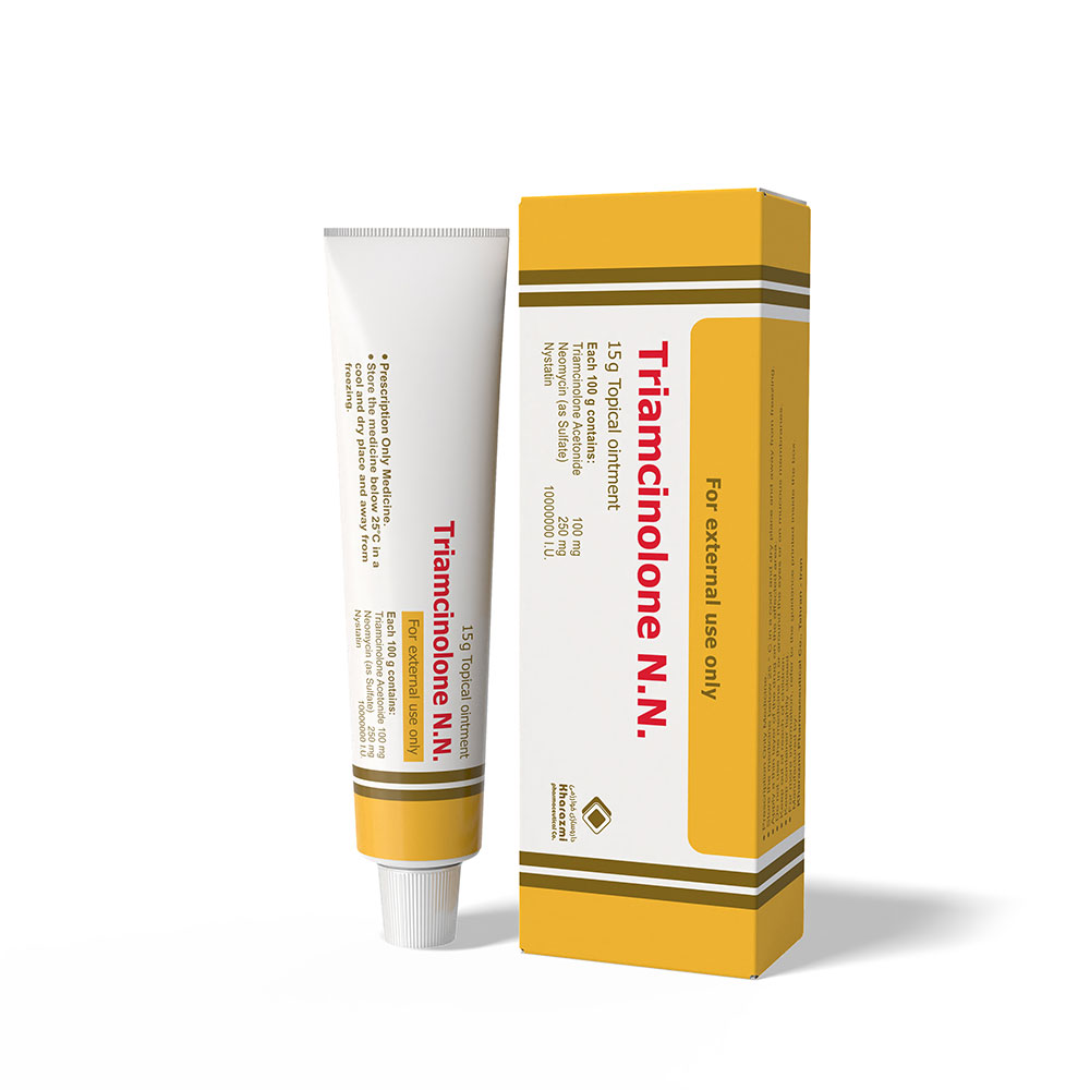 | معرفی محصول | هر پماد 15 گرمي، حاوي 100 ميلي گرم تريامسينولون استونايد، 250 ميلي گرم نئومايسين (به صورت سولفات) و 10000000 واحد بين المللي نيستاتين، در هر 100 گرم پماد مي باشد كه توسط شرکت داروسازی خوارزمی توليد و به بازار عرضه میشود. | |